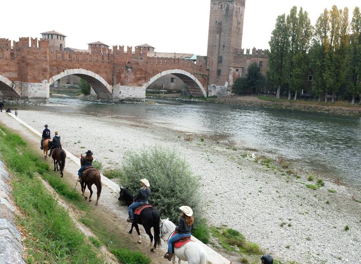 La passeggiata di un’ora e mezza, parte dalla frazione di Parona e percorre il lungadige fino all’Arsenale Austriaco, passando poi attraverso lo splendido ponte scaligero di Castelvecchio. Una volta arrivati in via Roma, poi, in poco tempo si è in Piazza Bra e, con l’Arena sullo sfondo, si imbocca il vicolo Volto San Luca fino al versante ovest dell’Adige, per fare poi ritorno al punto di ristoro di Corte Molon, da cui è anche possibile noleggiare le cavalcature.