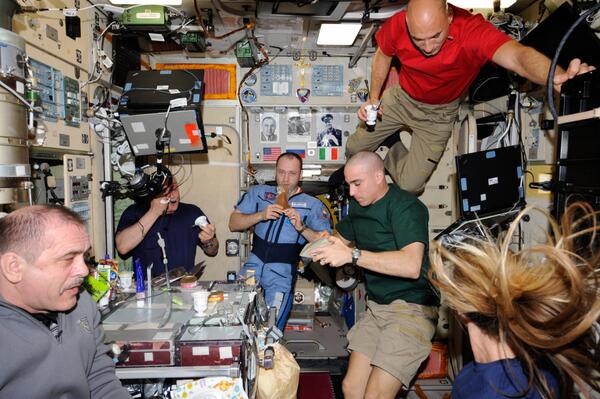 Lasagna, parmigiana e tiramisù ormai sono immancabili: i colleghi me ne avrebbero voluto se non lo avessi fatto”, ha detto.  E pensare che Gagarin, durante il primo volo spaziale, si alimentò con tubetti che contenevano crema di carne e di cioccolato. Parmitano è approdato alla SSI con l’astronauta statunitense Andrew Morgan e il cosmonauta russo Alexander Skvortsov alla fine di luglio. Il programma prevede tutta una serie di esprimenti europei, oltre 200 internazionali sulla microgravità e 6 test coordinati dall’ESA.