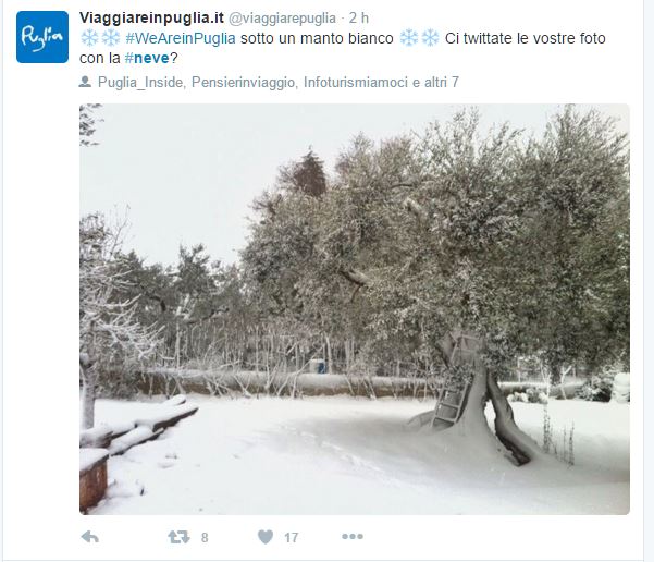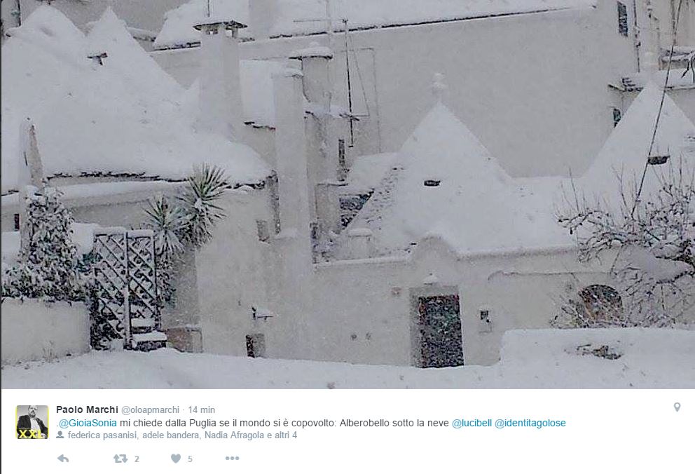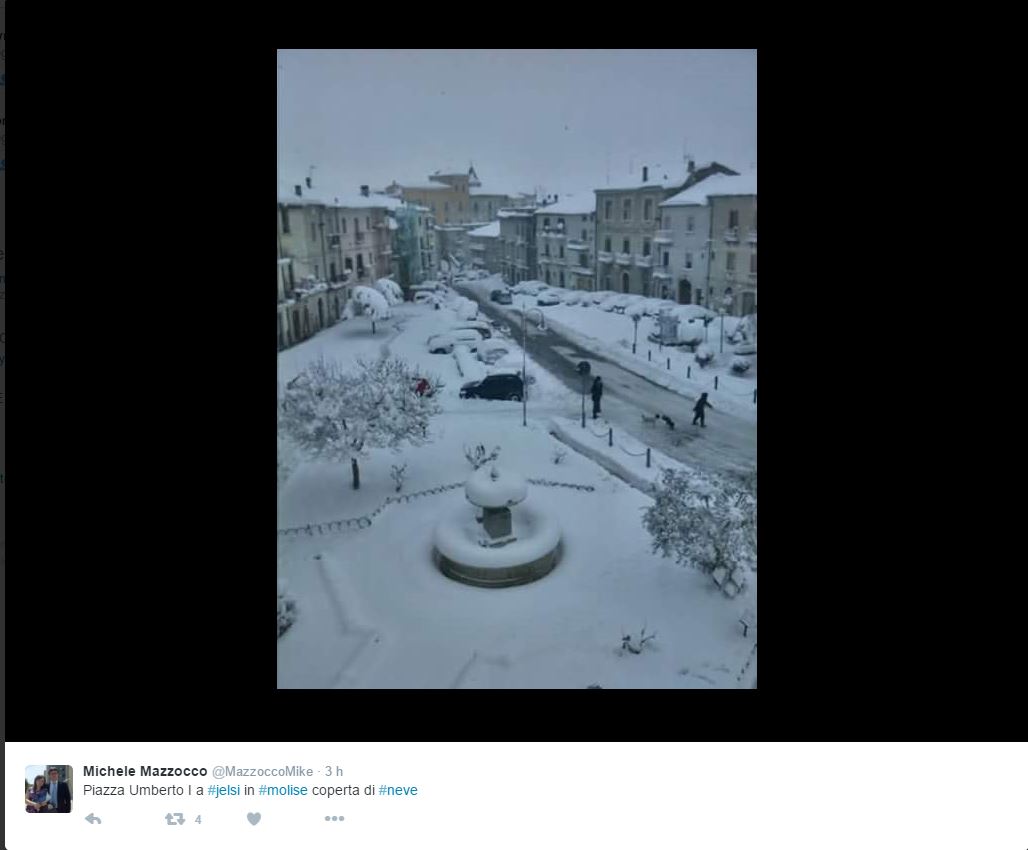 A causa della perturbazione dal nord-est che sta investendo la nostra penisola quasi tutto il Centro-Sud è coperto da una spessa coltre di neve, caduta anche in alcune località in cui questo fenomeno è quasi sconosciuto.